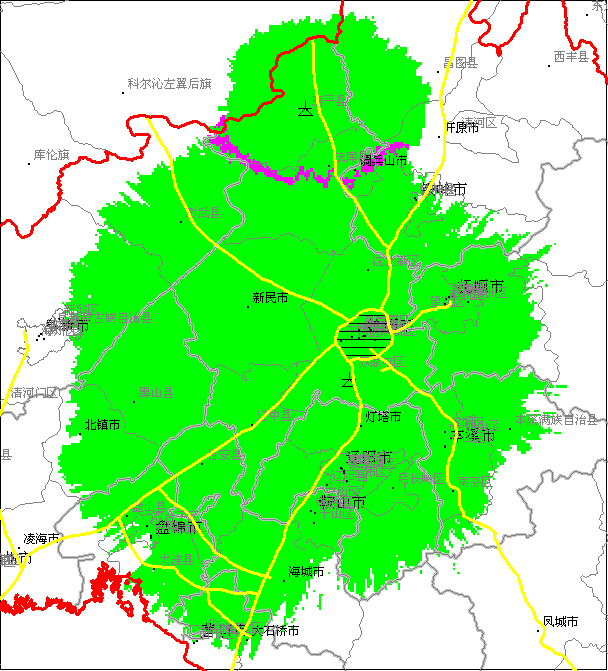 TM 2010XP 精密相位制中波同步广播设备,将同频干扰区域缩小至图中的0dB等场强“红线”。
