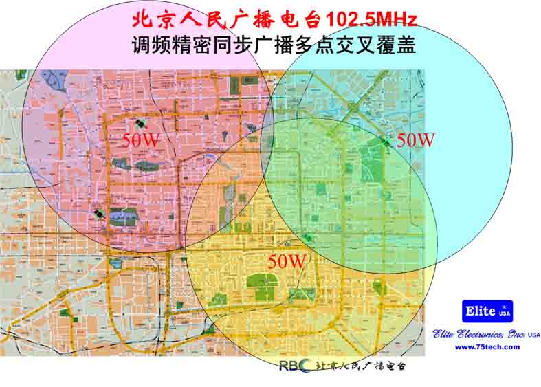 北京人民广播电台试验网的运行结论: 1. 已调波同频谱分配同步发射技术构建的单频网,多台信号交叠覆盖的情况下,可以良好服务。 2. 对比试验表明:已调波同频谱组网方式,其效果远优于其它的分散调制方式(包括数字调频)。 3. 固定或慢速移动接收的效果,由于快速移动接收。 4. 多点小功率发射台构建的蜂窝状覆盖网,其能效比远高于单台大功率覆盖方式。